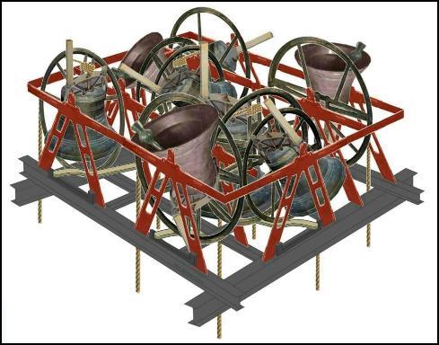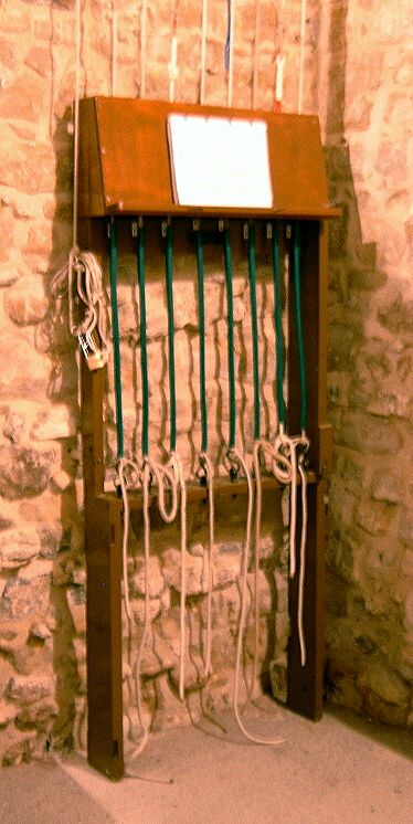 parts, a wall-mounted rack in the ringing chamber with ropes that go up to