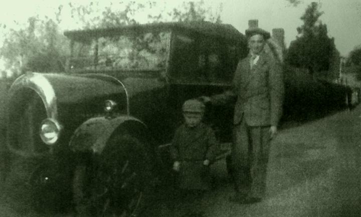 as a 3 years old with Ernie Barbrook and his “Bean” taxi in Church Street |