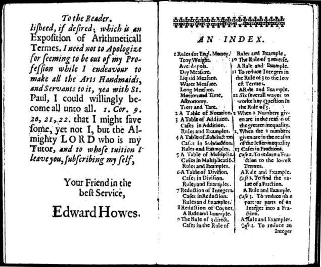 Arithmetick, book written by the Revd. Edward Howes, Goldhanger Rector. . .
