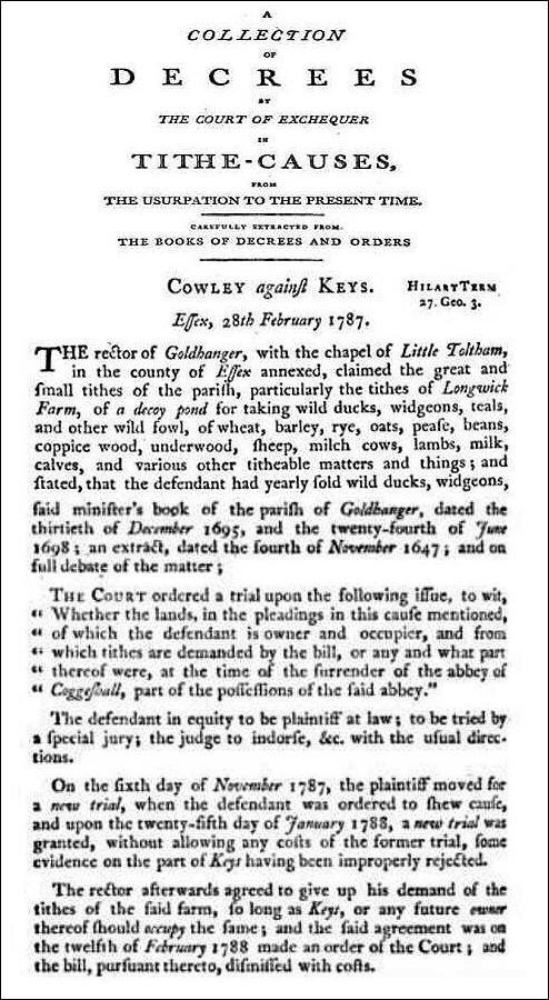 & Tithe Causes, a report of a court case of non-payment of tithes at
