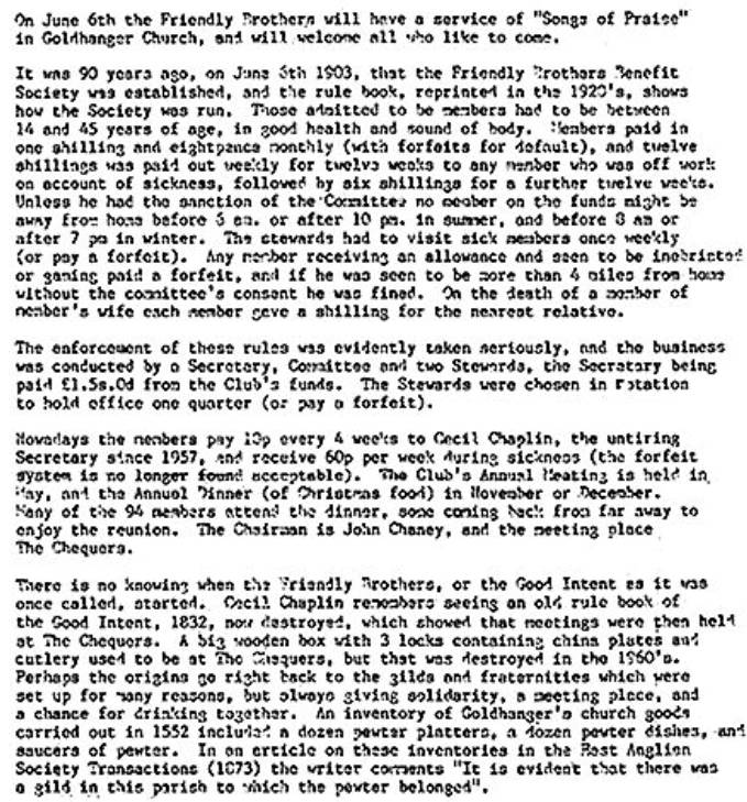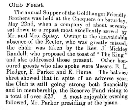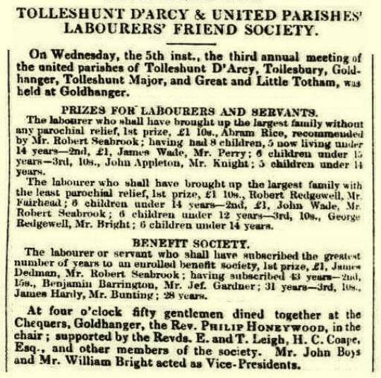 Friendly Society activities. In 1842 the Essex Standard reported on a joint