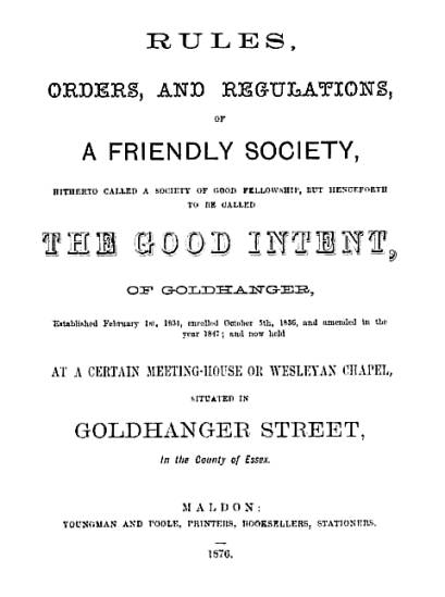 identified 87 friendly societies in Essex, with Goldhanger society established