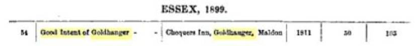 Societies lists “The Good Intent of Goldhanger, Chequers Inn” also established