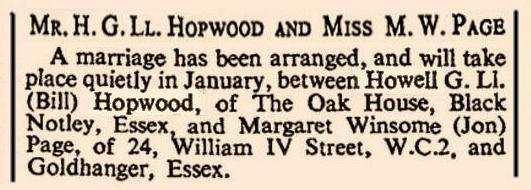 January 1952. Above is the marriage announcement in the Times of December 1951. It is believed they had met when Bill