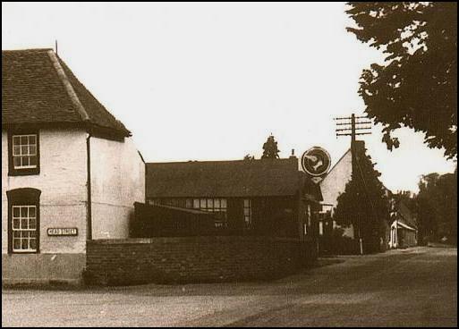 1930s postcard showing a 1920s Ford outside the village shop in The Square, with the early petrol