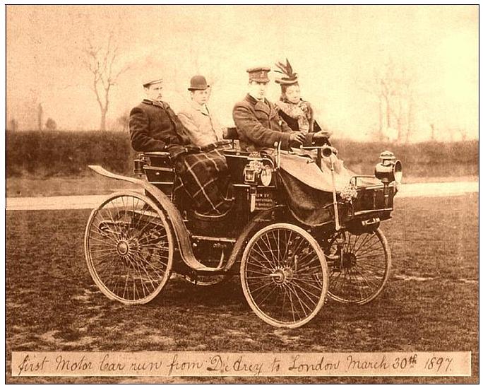 Office – T/P 507/1 A photograph with the “date of creation” of 1897 that has these words hand written on the original: “The first motor car run from D’Arcy to London on 30 March